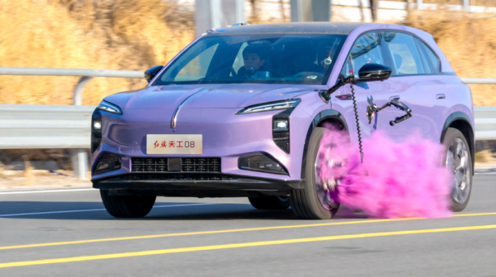 高速爆胎稳控测试中,红旗天工08在120km/h直线行驶中瞬间触发爆胎,凭借毫秒级爆胎信号识别与扭矩矢量控制技术,精准地将轨迹偏移控制在3.5米的安全通道内。